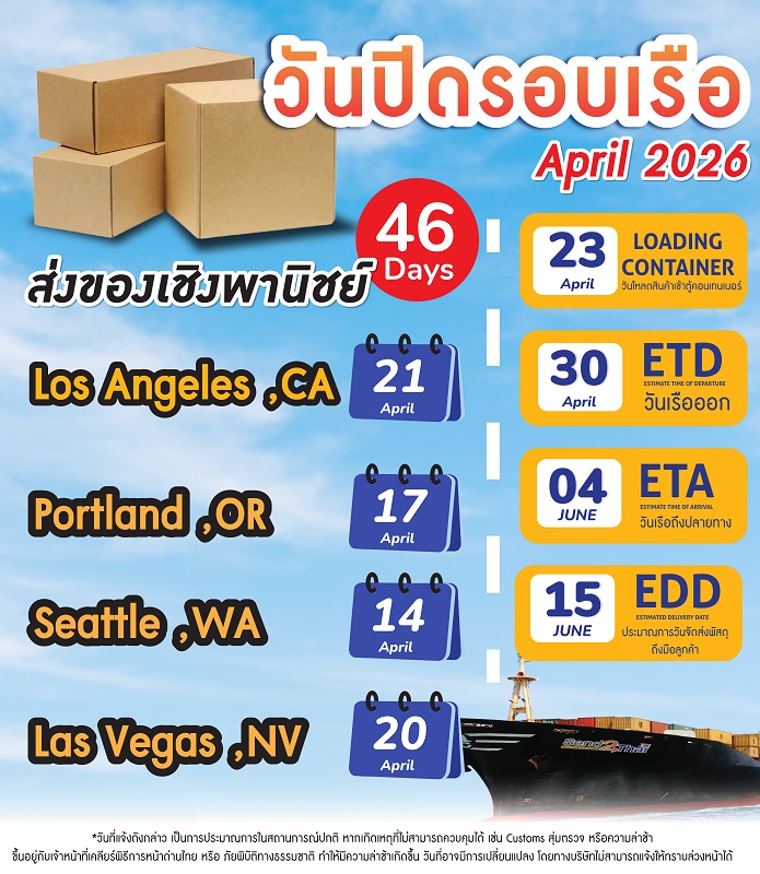 วันปิดรอบเรือเดือนมีนาคม 2026 Commercial