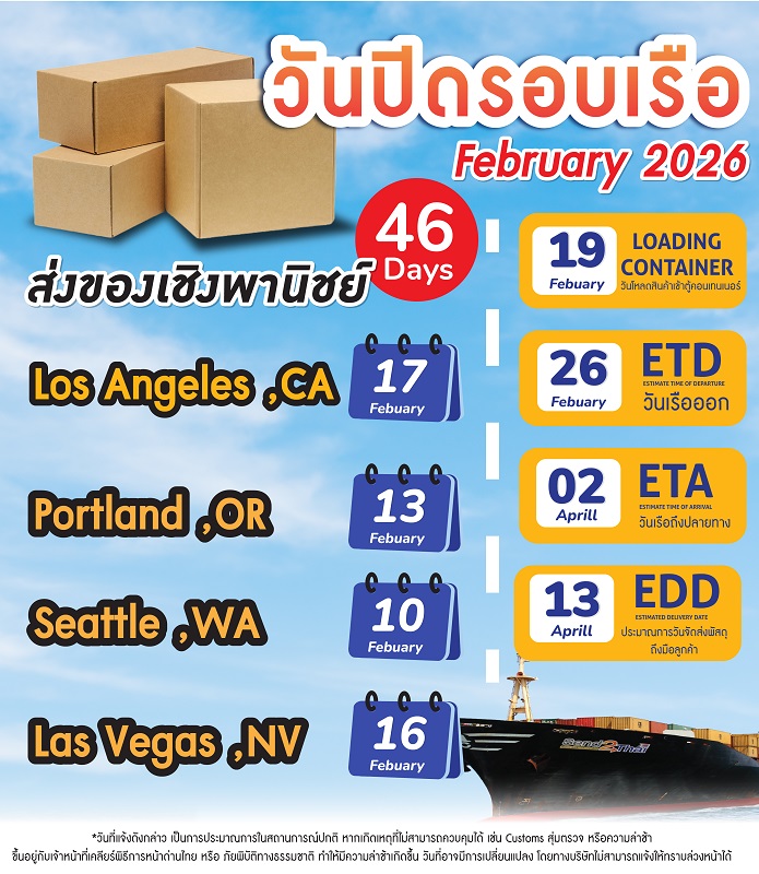 วันปิดรอบเรือเดือนกุมภาพันธ์ 2026 Commercial